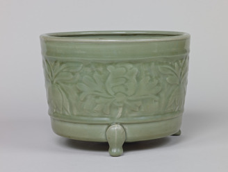 青磁浮牡丹文香炉