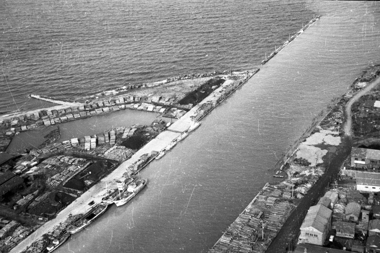 新宮川(熊野川)河口の新宮貯木場