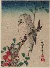 「山茶花(さざんか)に梟(ふくろう)」