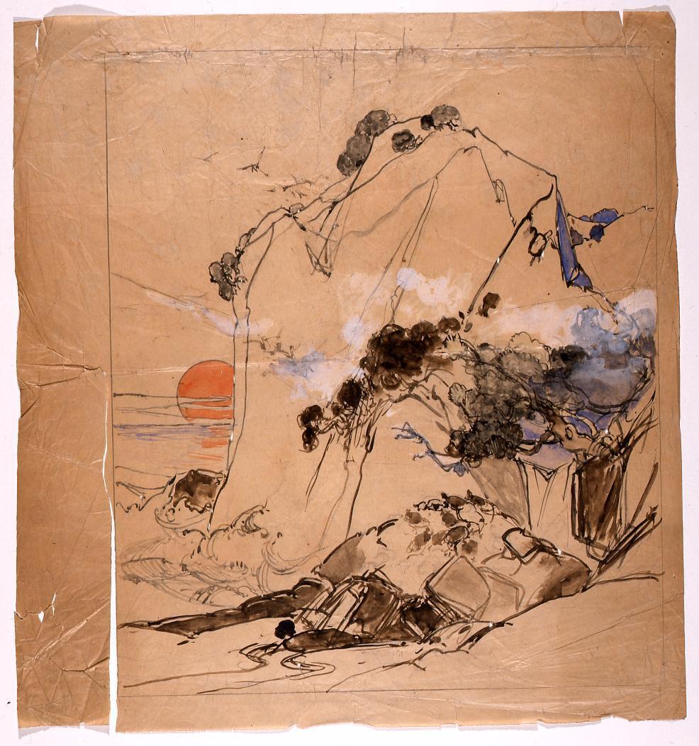 下絵 巨岩日没図