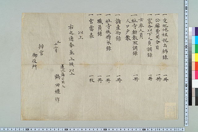 〔辨官御役所へ差上候目録扣〕