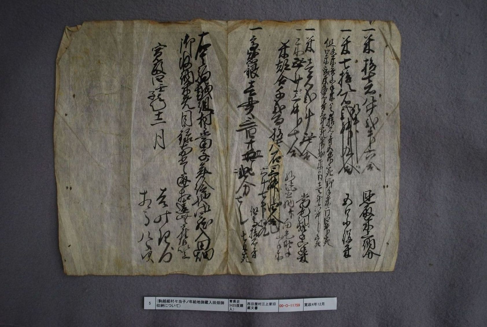 (駒越組村々当子ノ年給地御蔵入田畑御収納について)