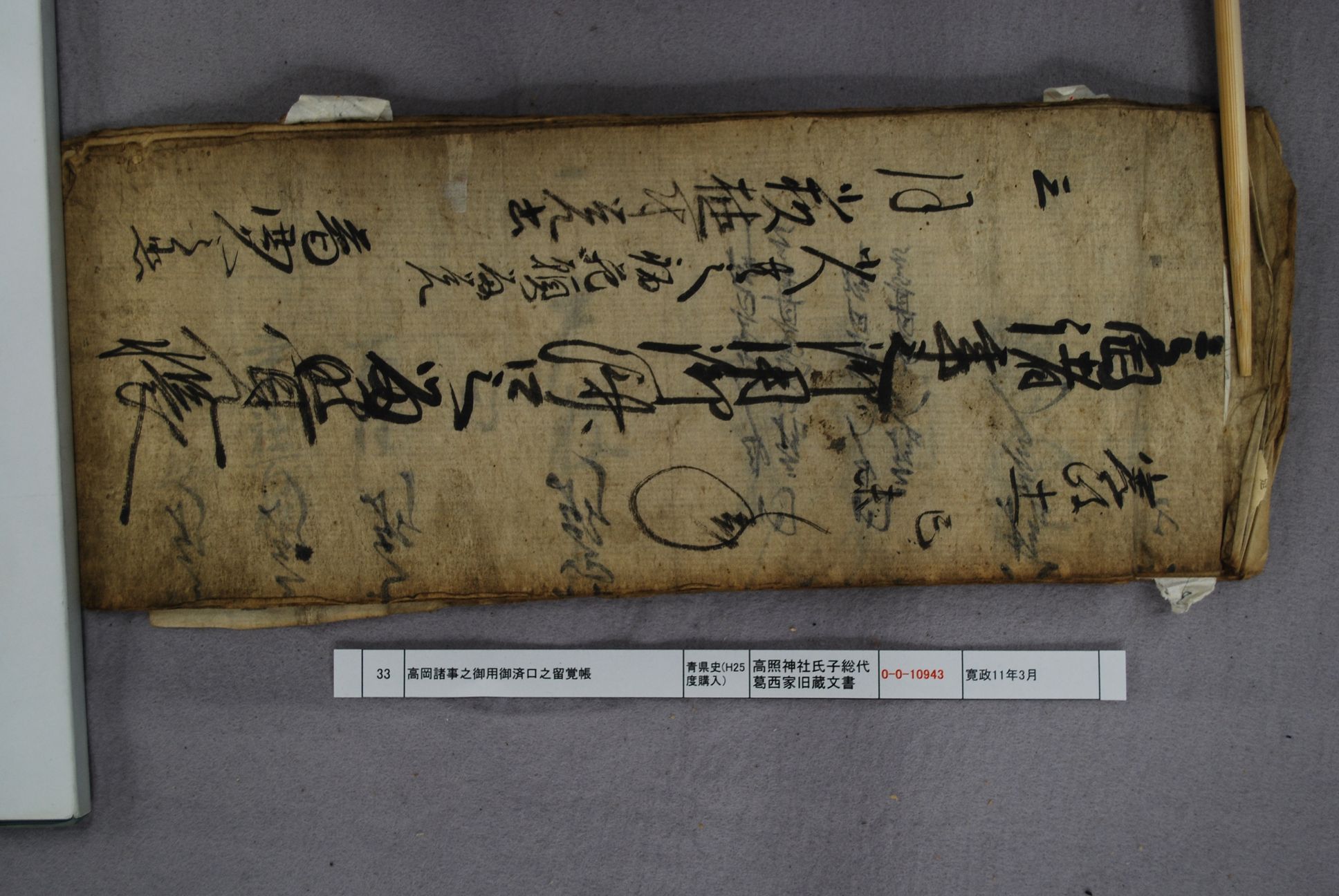高岡諸事之御用御済口之留覚帳