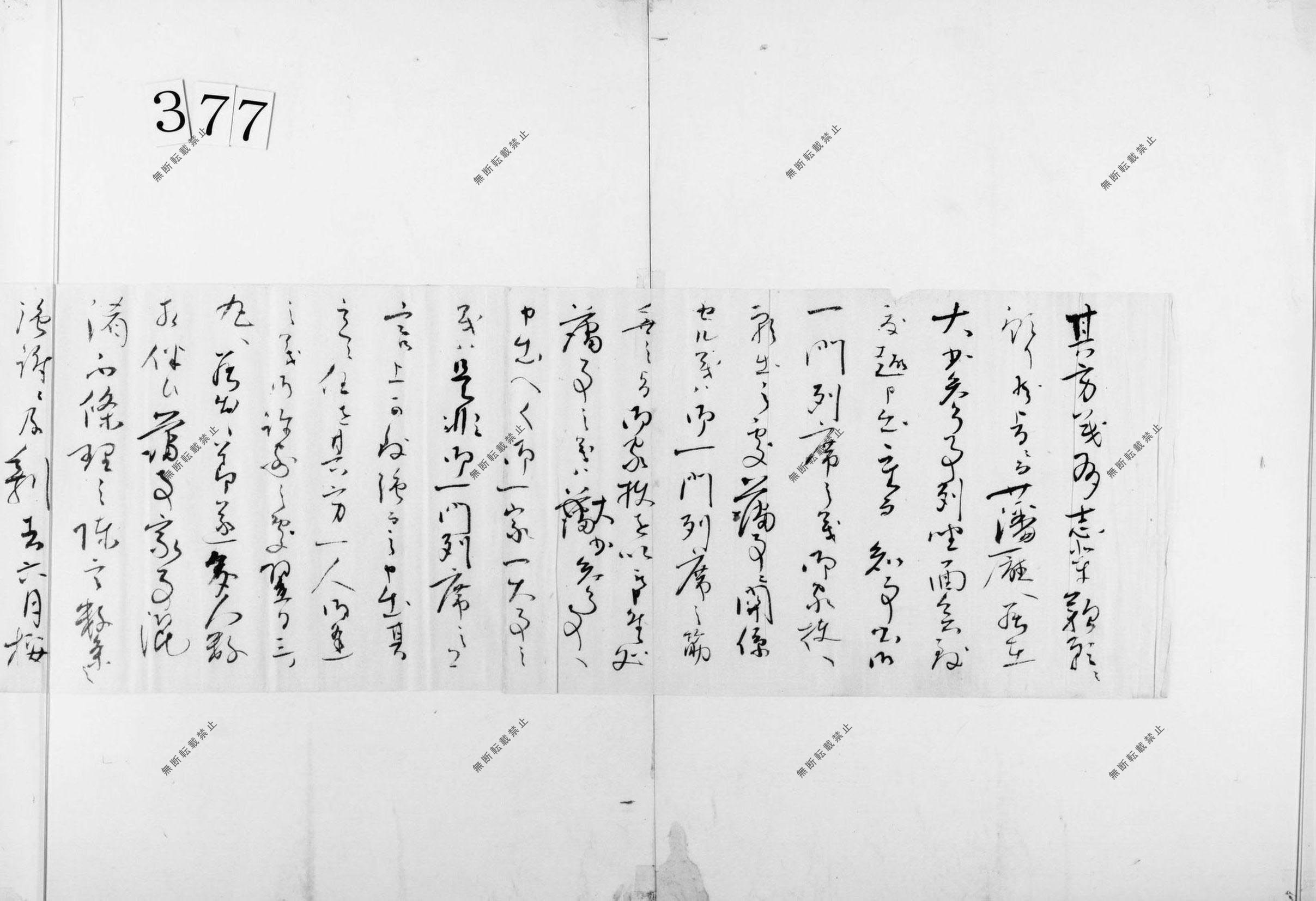 (藩士泊り御番等覚、紙背かな書き書状)