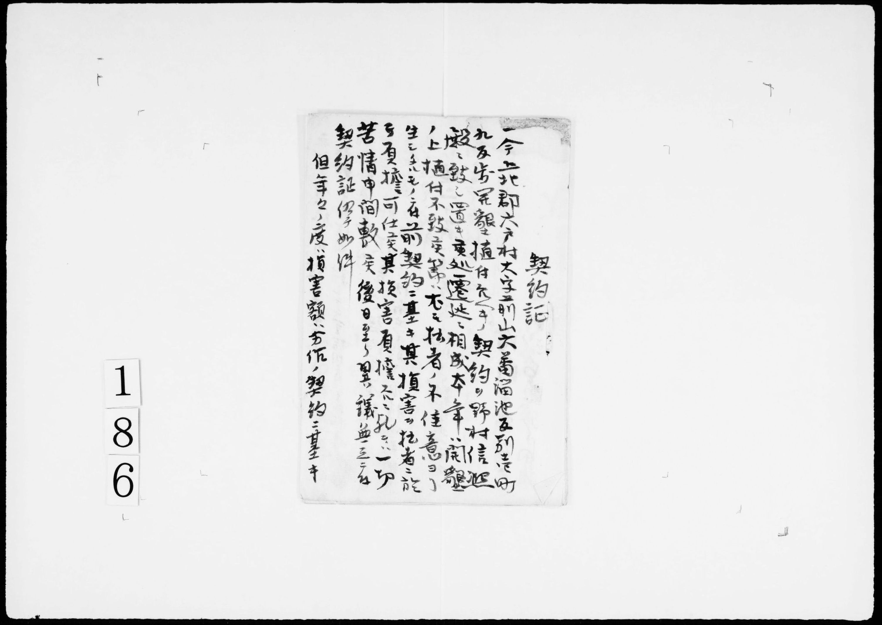 契約証(溜池の開墾を野村信照に委託、損害の場合当方で負担)