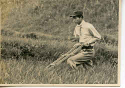 除草器を使って田んぼの雑草取り
