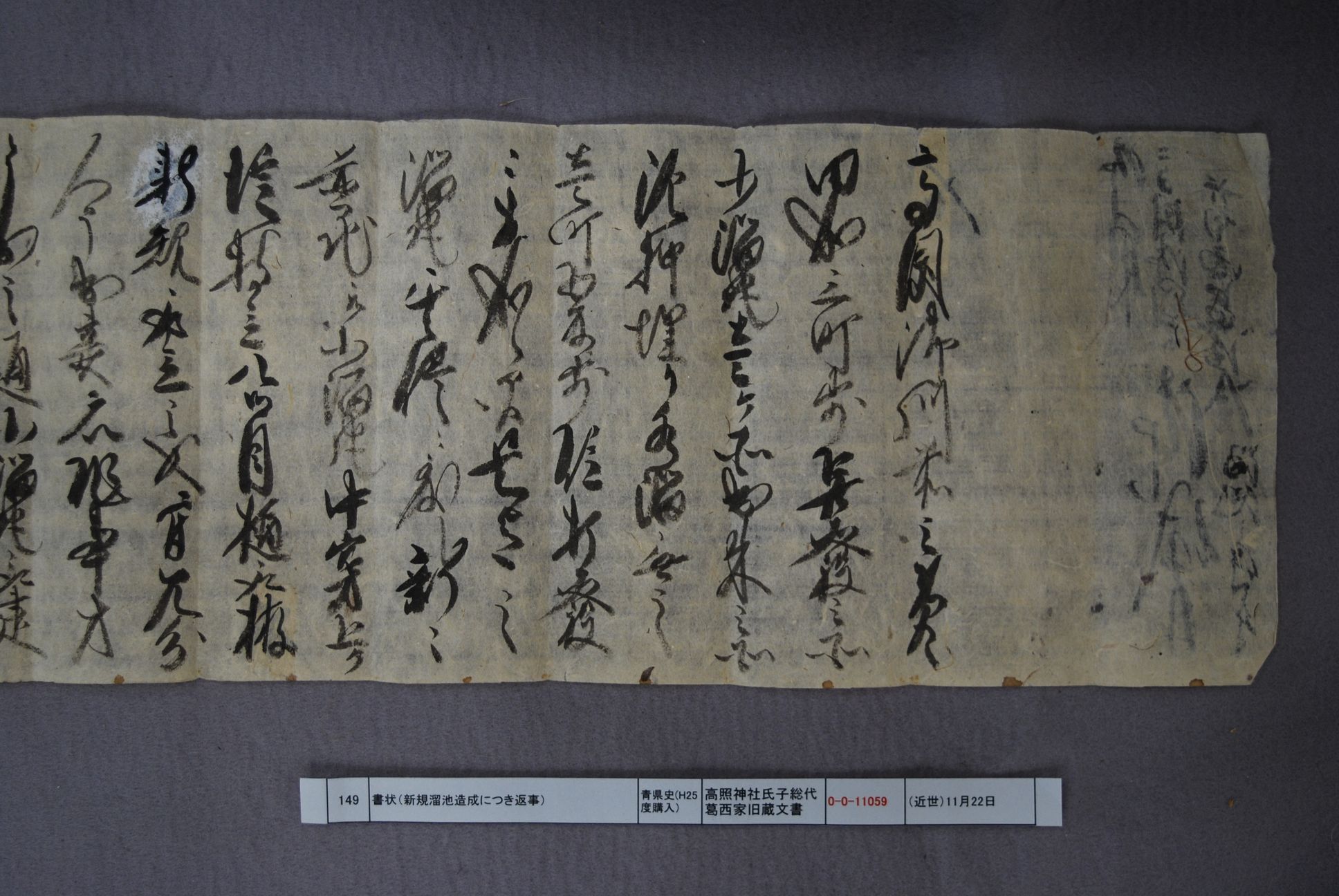 書状(新規溜池造成につき返事)