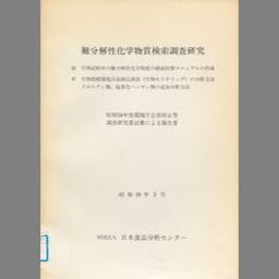 難分解性化学物質検索調査研究 Ⅲ 生物試料中の難分解性化学物質の検索技術マニュアルの作成 Ⅳ 生物指標環境汚染測定調査(生物モニタリング)の分析方法 クロルデン類、塩素化ベンゼン類の追加分析方法(昭和58年度)