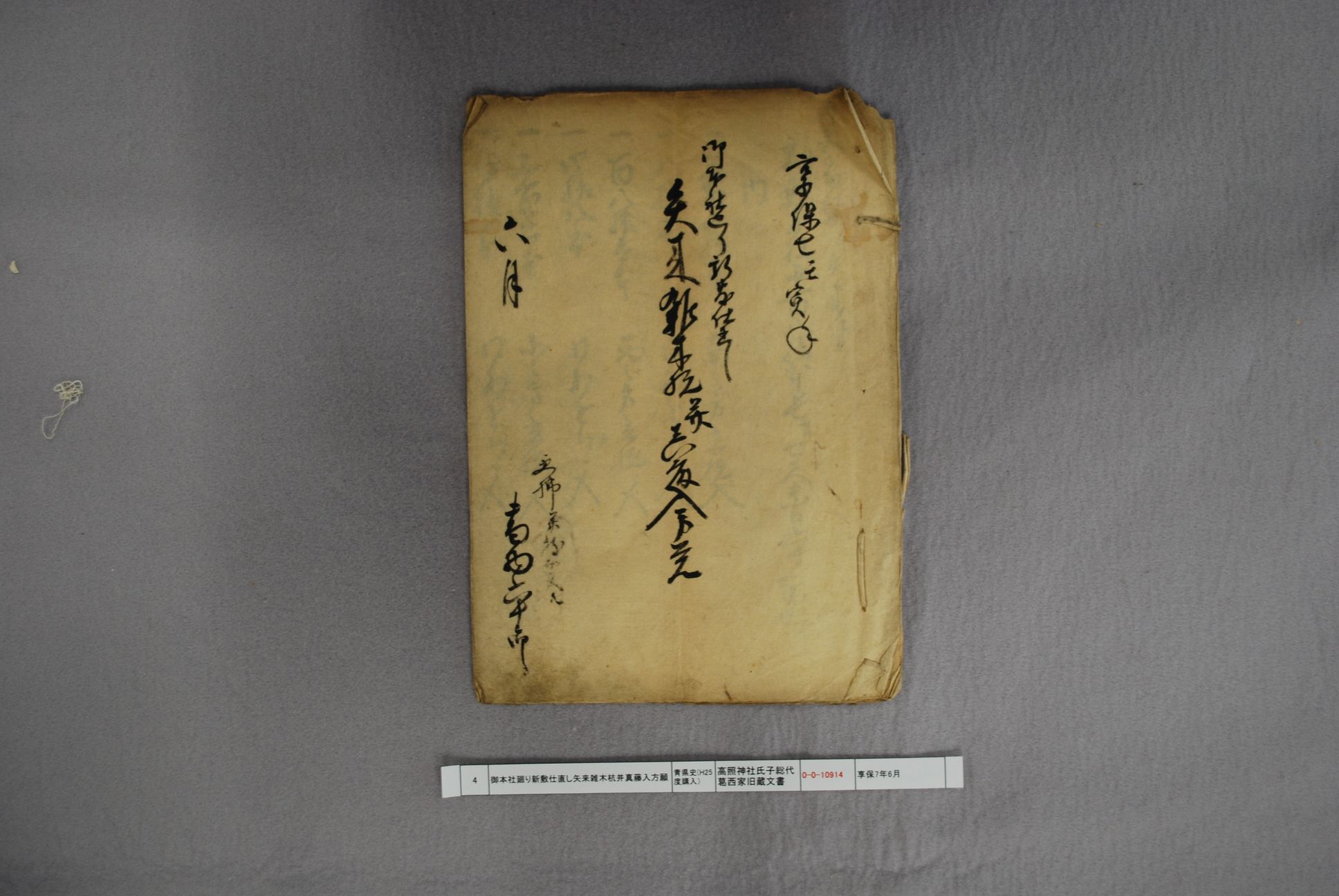 [水神御祈祷配札のため、名代夏目藤宇差遣しにつき、御引廻し願い]