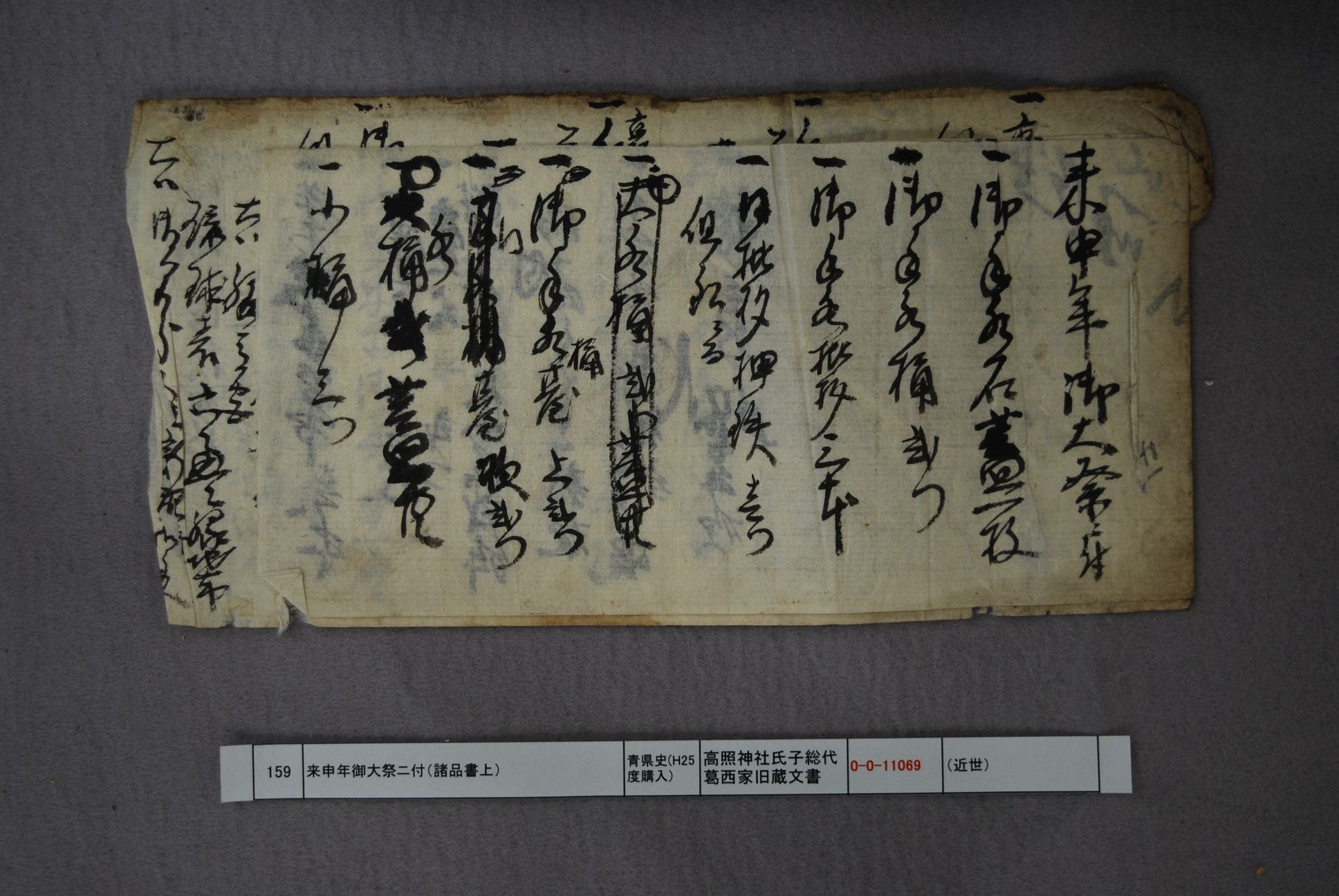 来申年御大祭ニ付(諸品書上)
