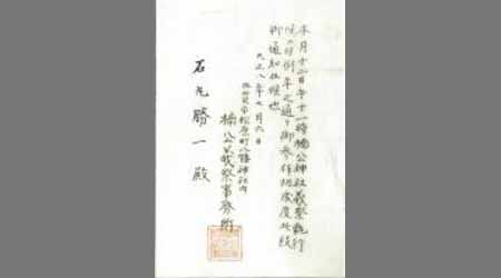 [一昨日、潮見山大明神千百五十年御祭典執行の儀につき書状]