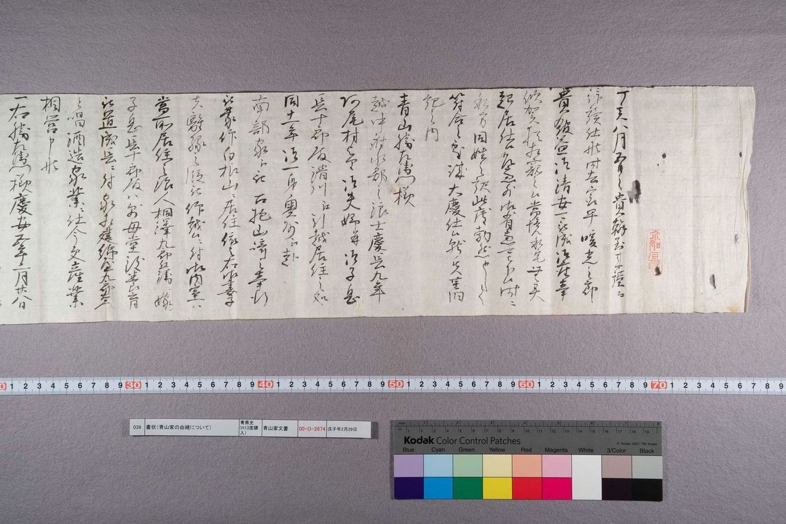 書状(青山家の由緒について)