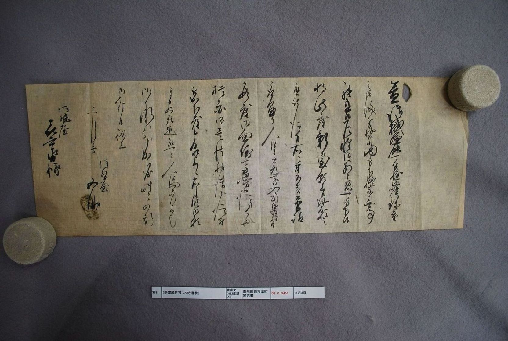 (新室願許可につき書状)