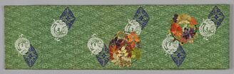 丸帯 萌黄綾地花丸尾長鳥丸八藤菱模様