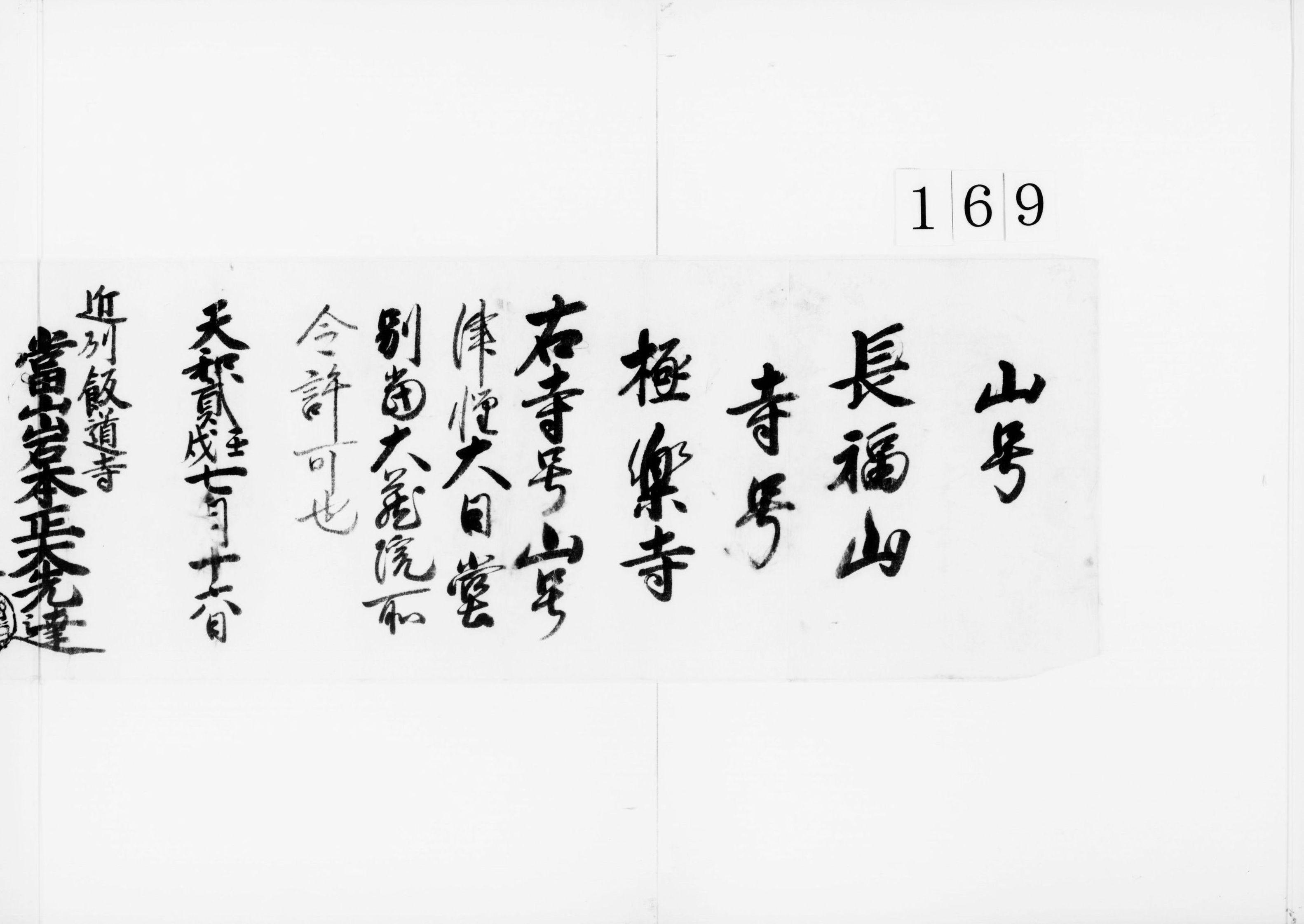 寺山号免許黒印状