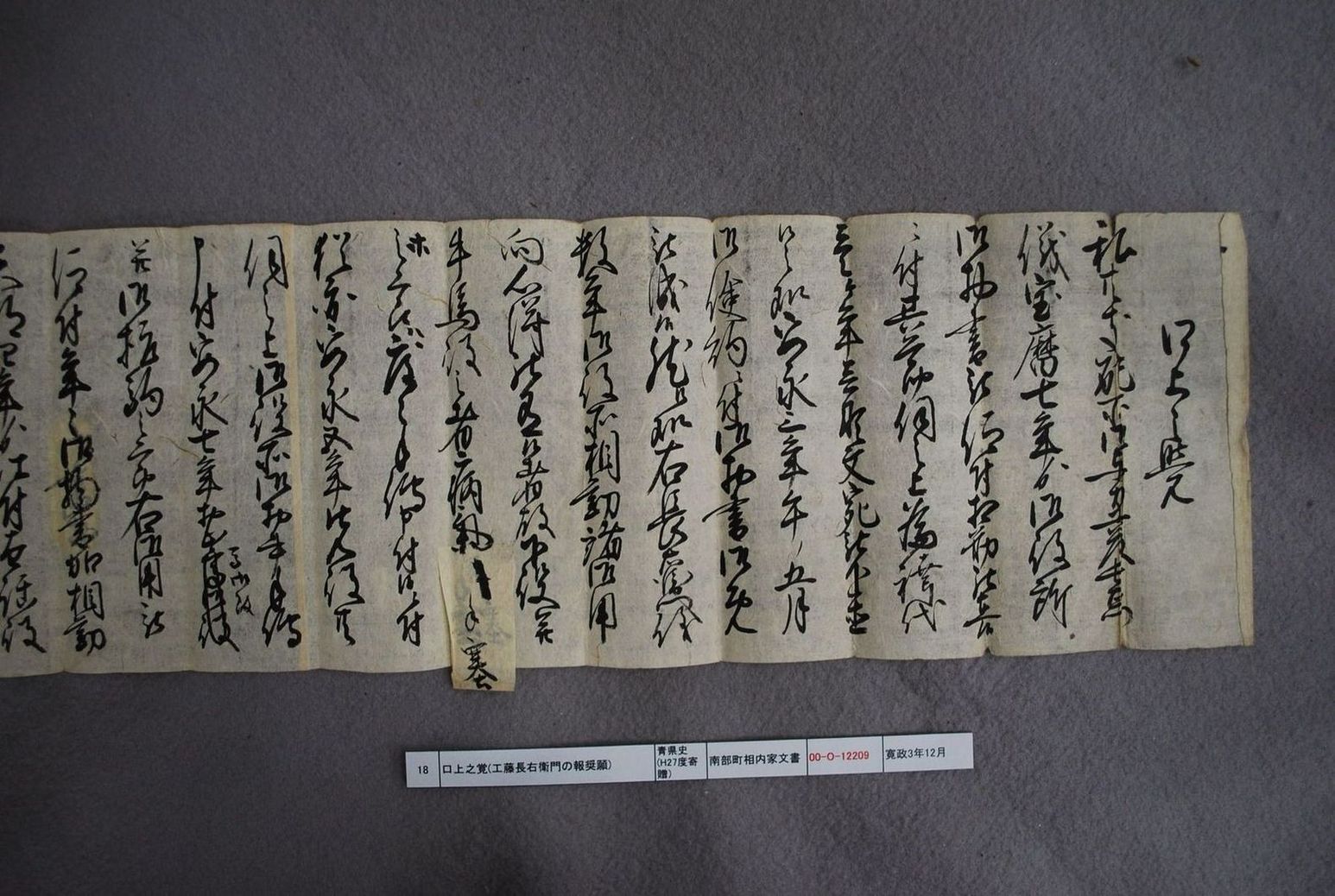 口上之覚(工藤長右衛門の報奨願)