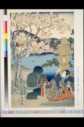 (池畔の桜に灯籠の図)