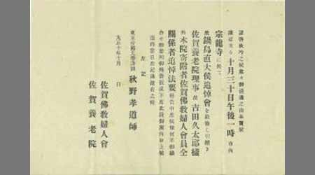 〔故鍋島直大侯外追悼会案内状〕