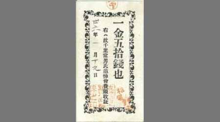 故千葉常男氏追悼会費領收証