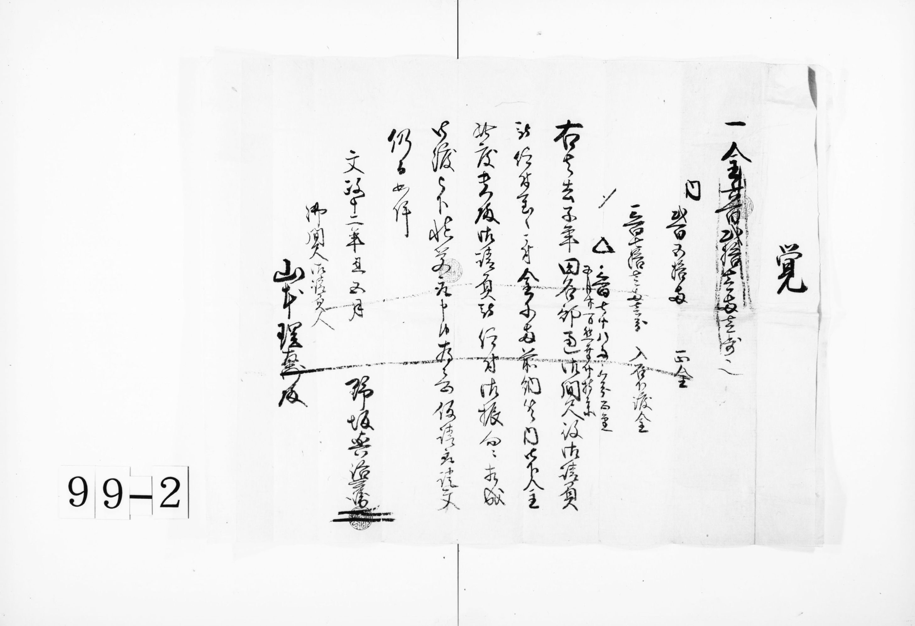 覚(米壱石五斗秋年貢請取証文)