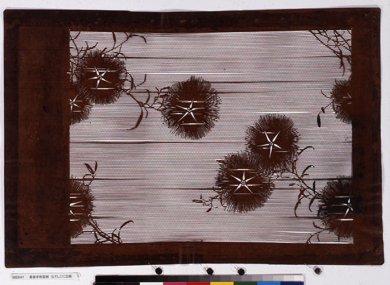 長板中形型紙 立縞になでしこ