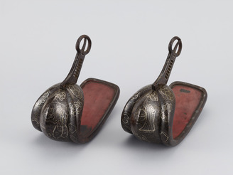 南蛮人牡丹唐草象嵌鐙