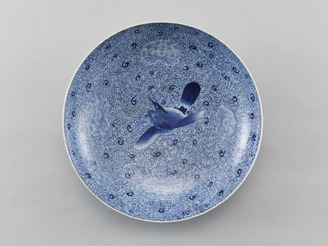 染付鳥牡丹唐草文大皿