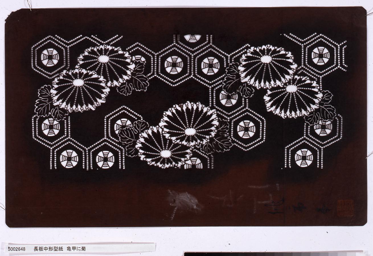 長板中形型紙 亀甲に菊