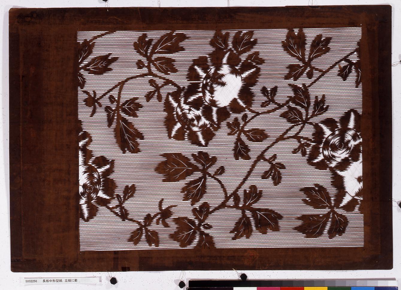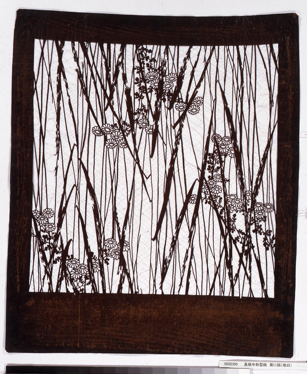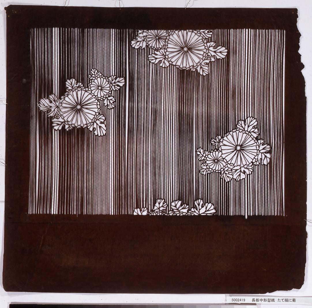長板中形型紙 たて縞に菊