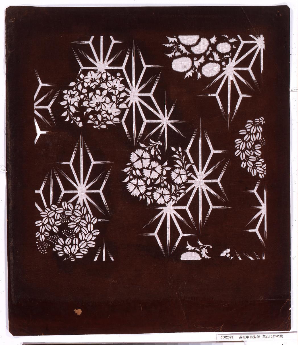 長板中形型紙 花丸に麻の葉
