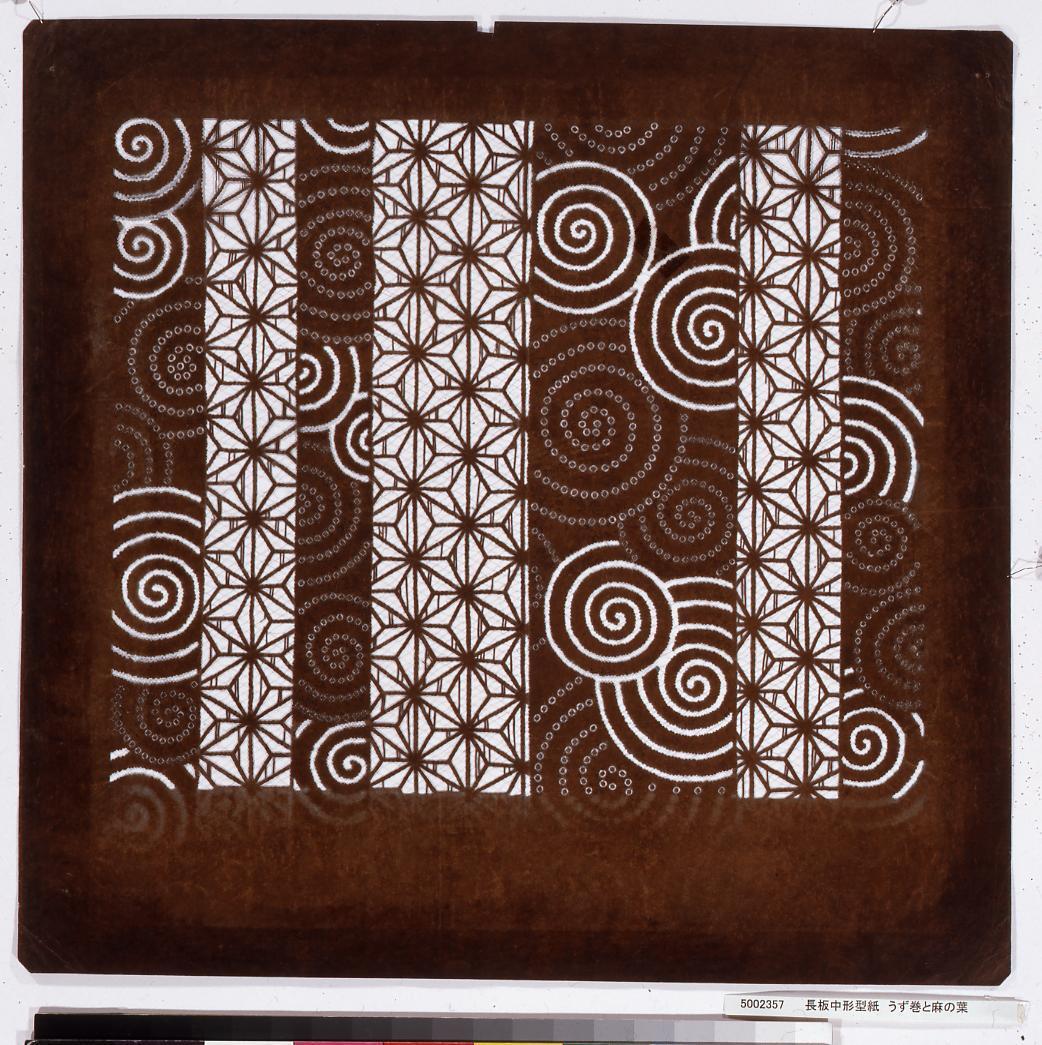 長板中形型紙 うず巻と麻の葉
