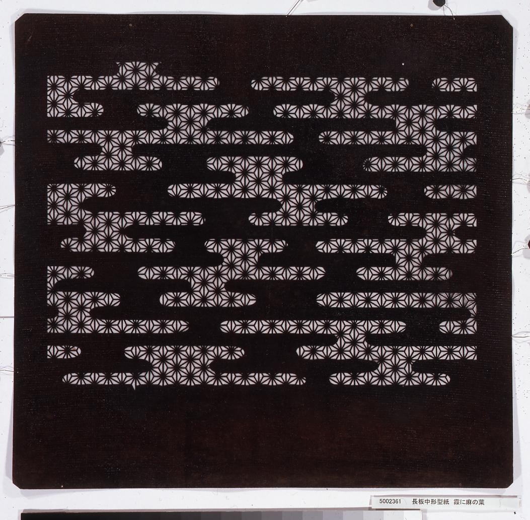 長板中形型紙 霞に麻の葉