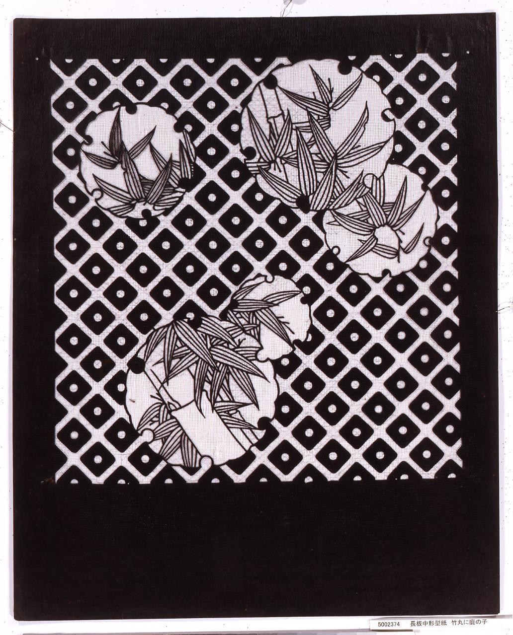 長板中形型紙 竹丸に鹿の子