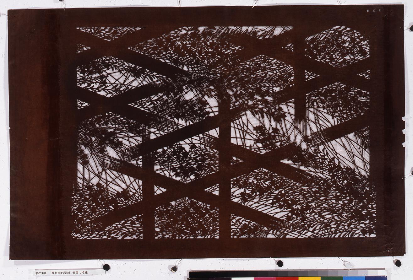長板中形型紙 籠目に桔梗