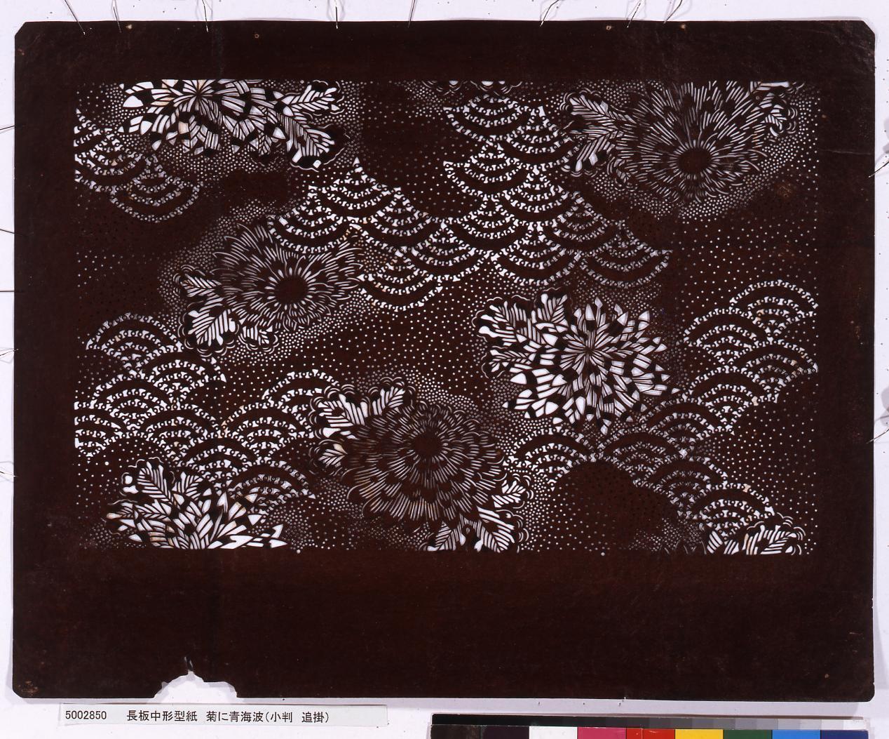 長板中形型紙 菊に青海波(小判 追掛)