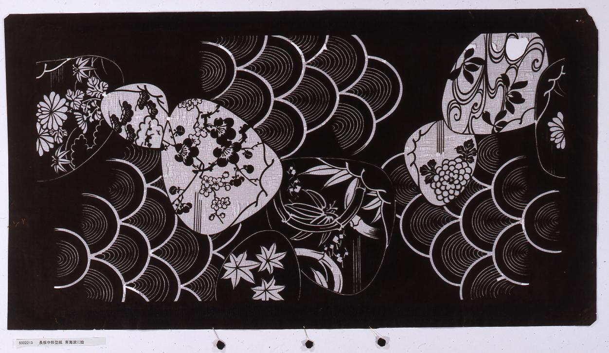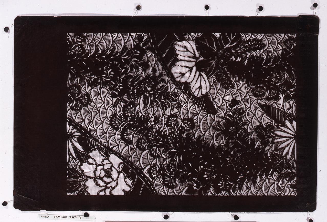 長板中形型紙 青海波に花