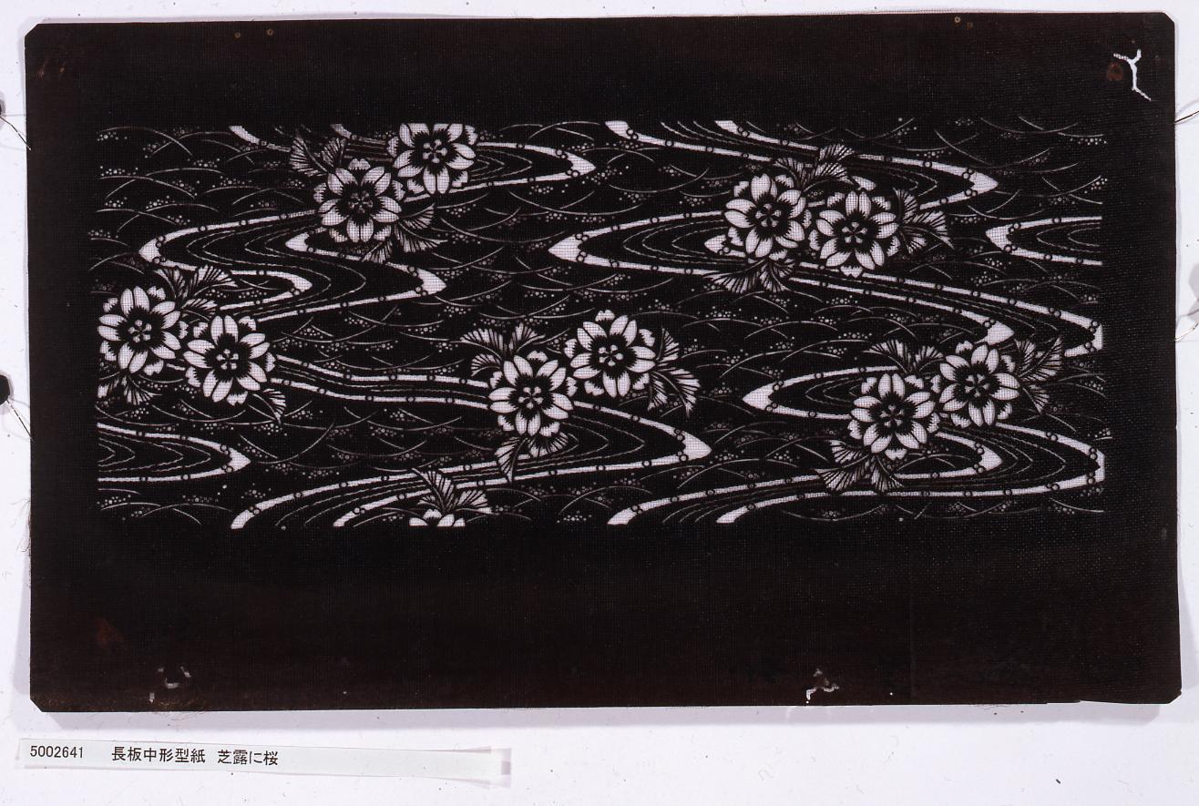 長板中形型紙 芝露に桜