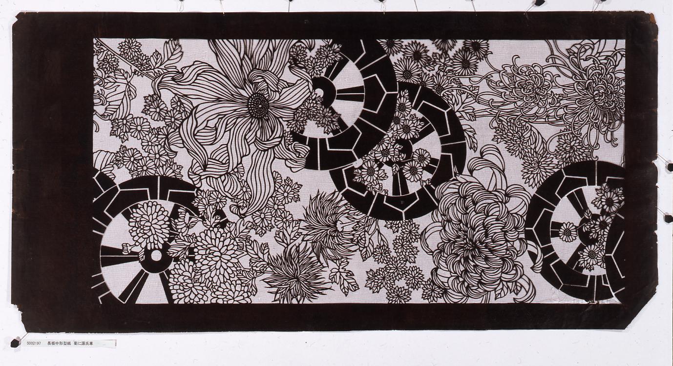 長板中形型紙 菊に源氏車
