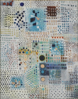 黄と白と青の網目