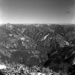 北方より南方に連なる山なみ
