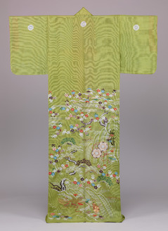 単衣 鶸色絽地風景模様