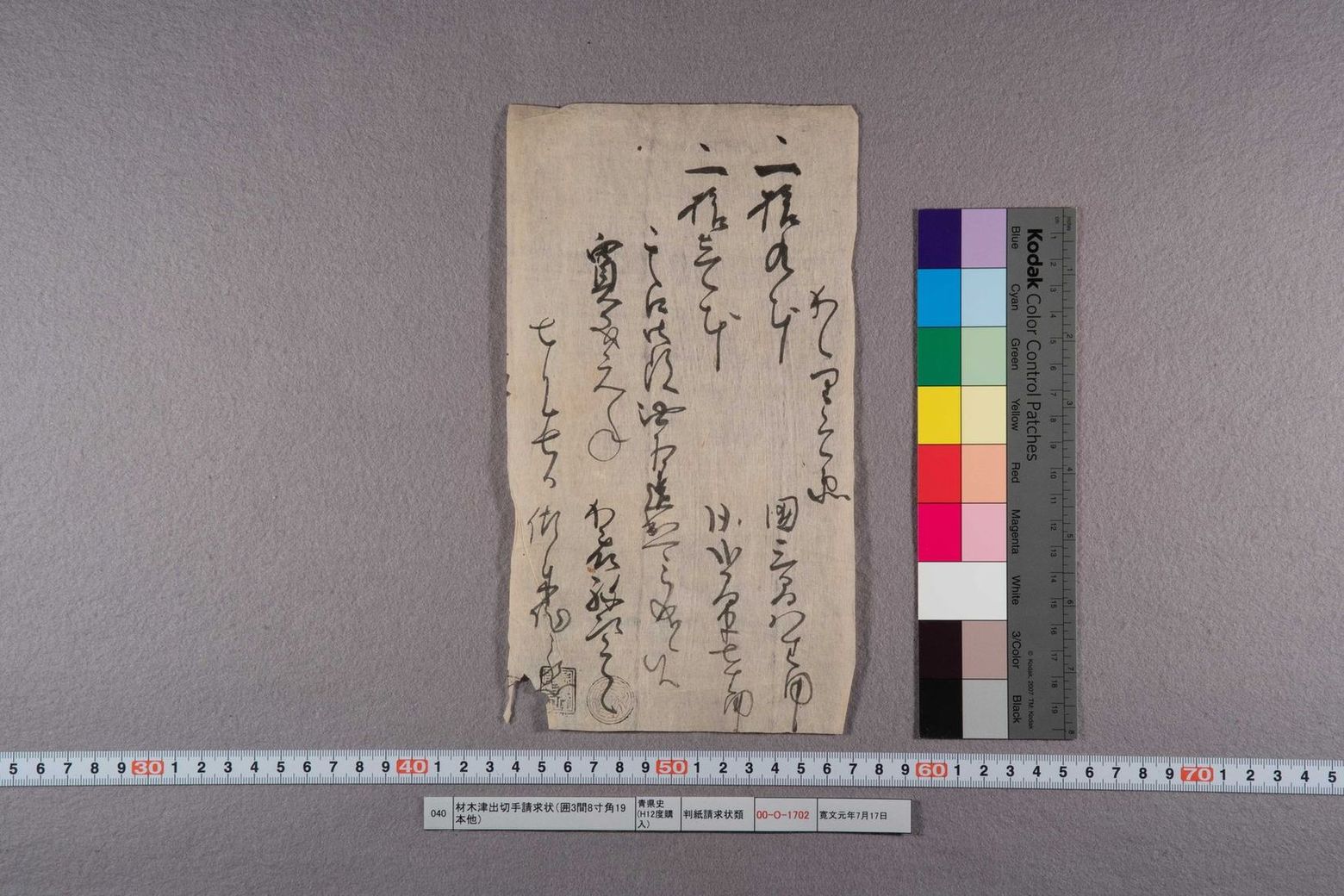 材木津出切手請求状(囲3間8寸角19本他)