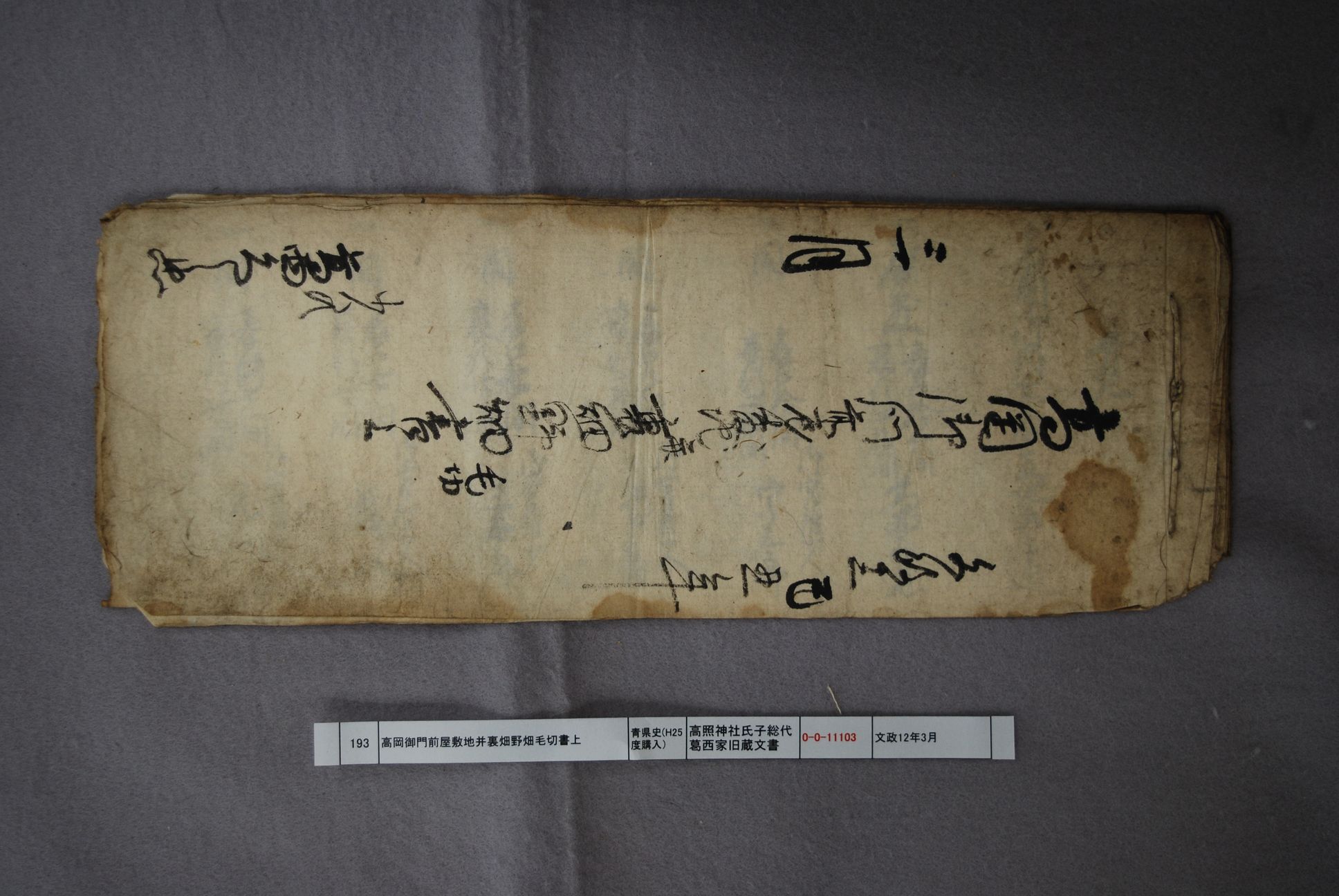 高岡御門前屋敷地并裏畑野畑毛切書上