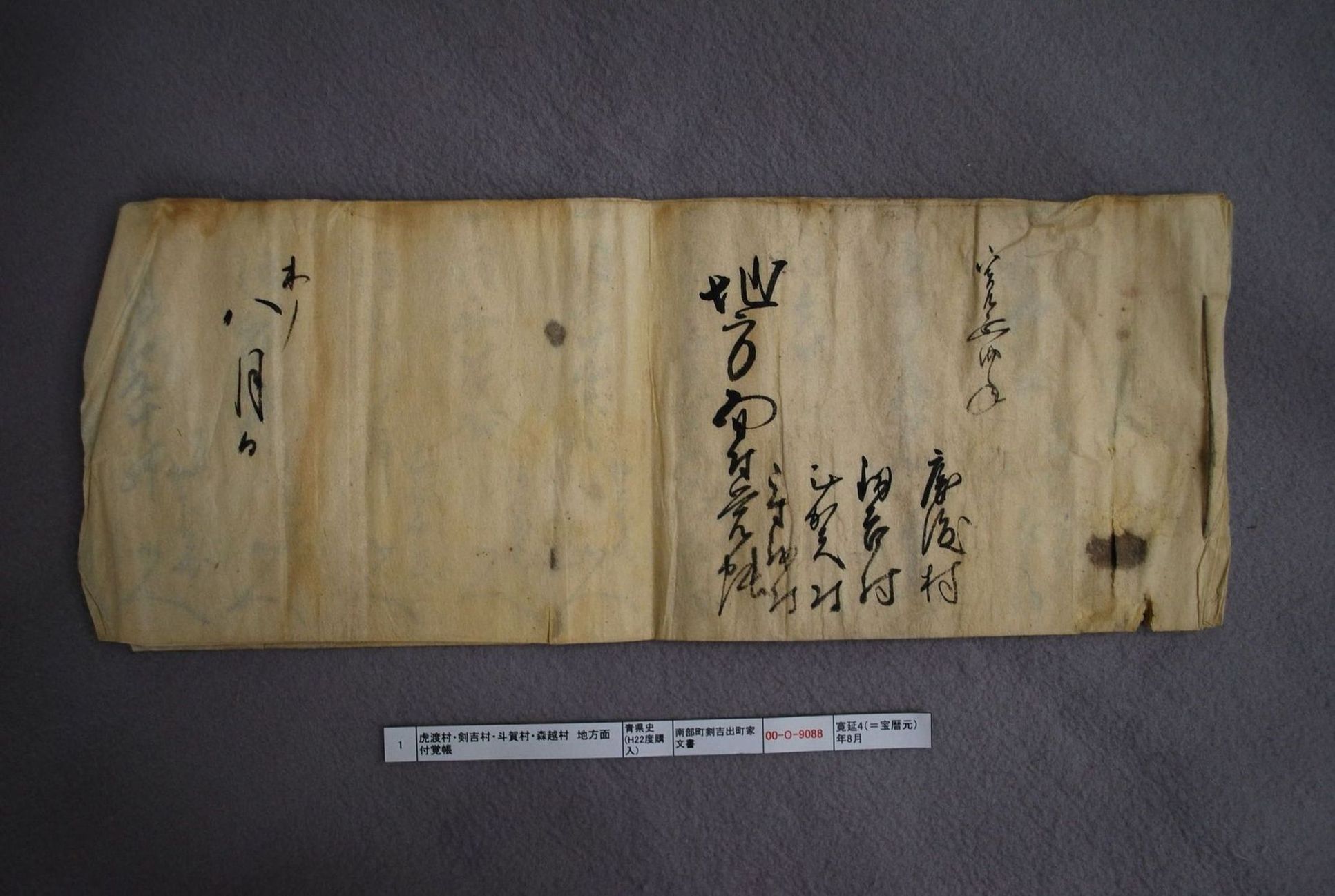 虎渡村・剣吉村・斗賀村・森越村 地方面付覚帳