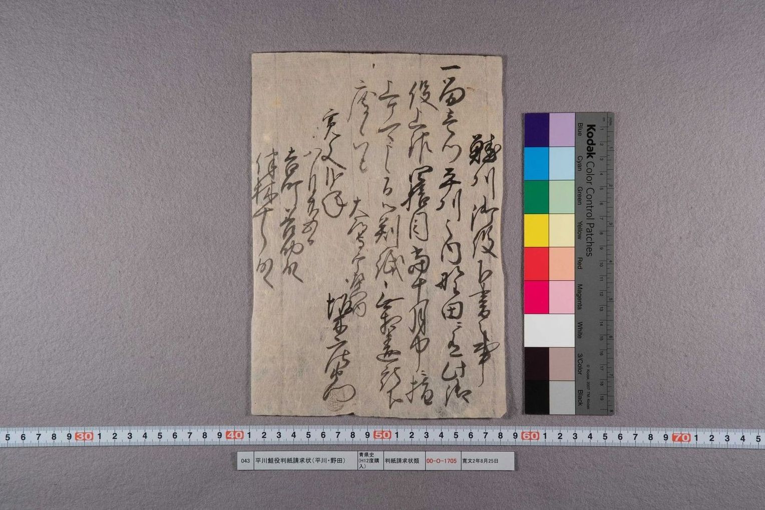 平川漁役判紙請求状(平川・湯くり船一艘)