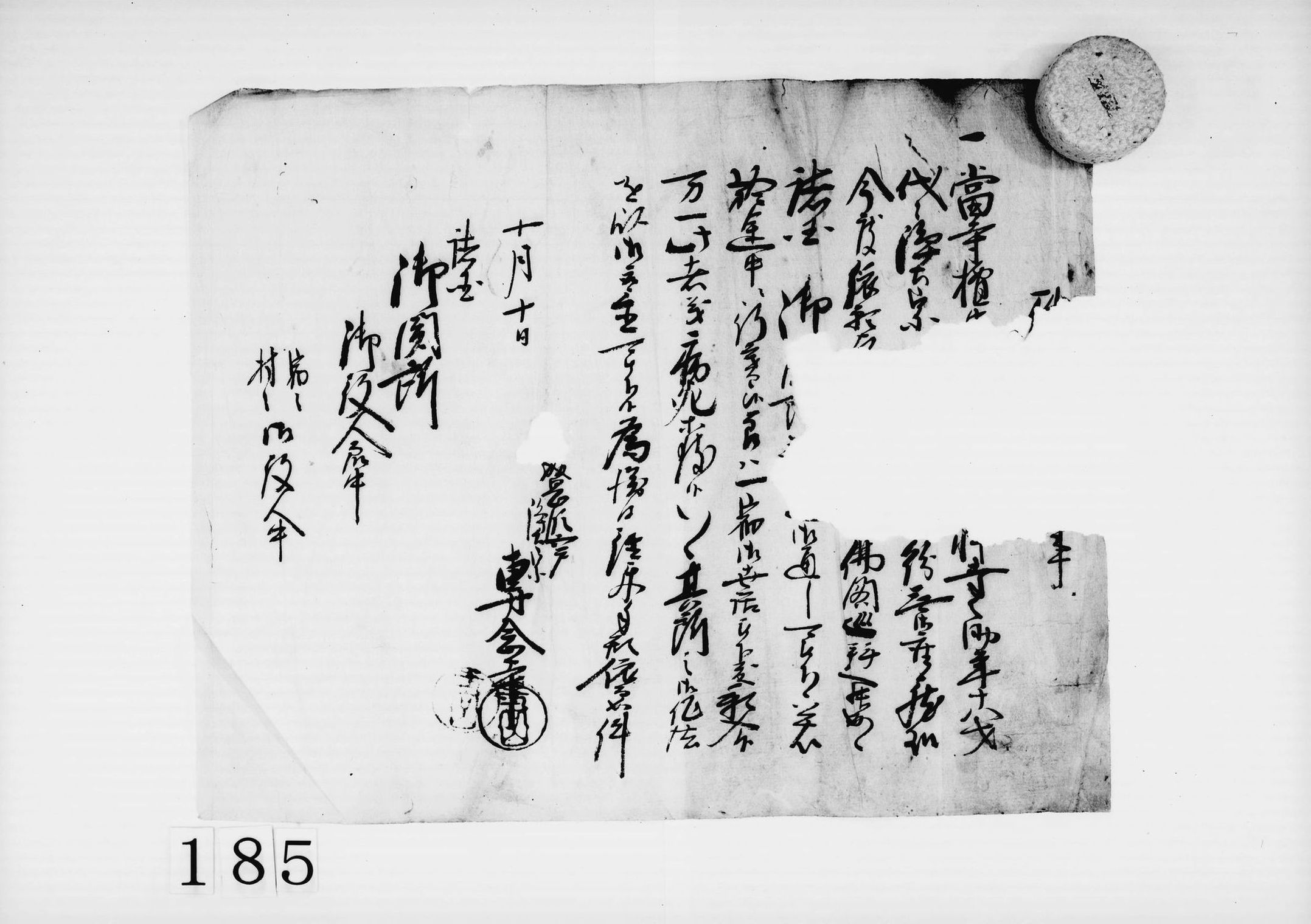 (江戸へ御肴遣上に付、伝馬切手)