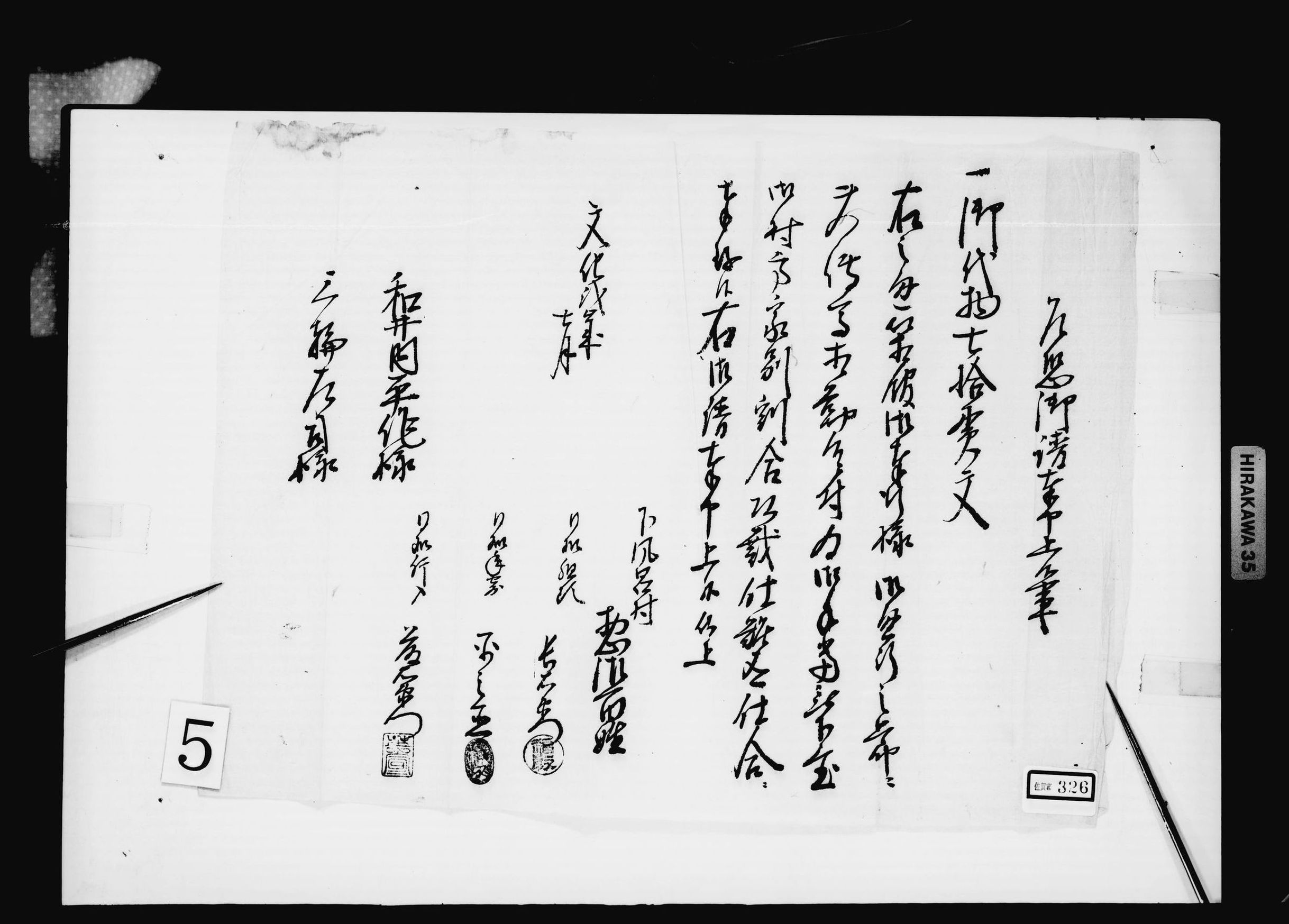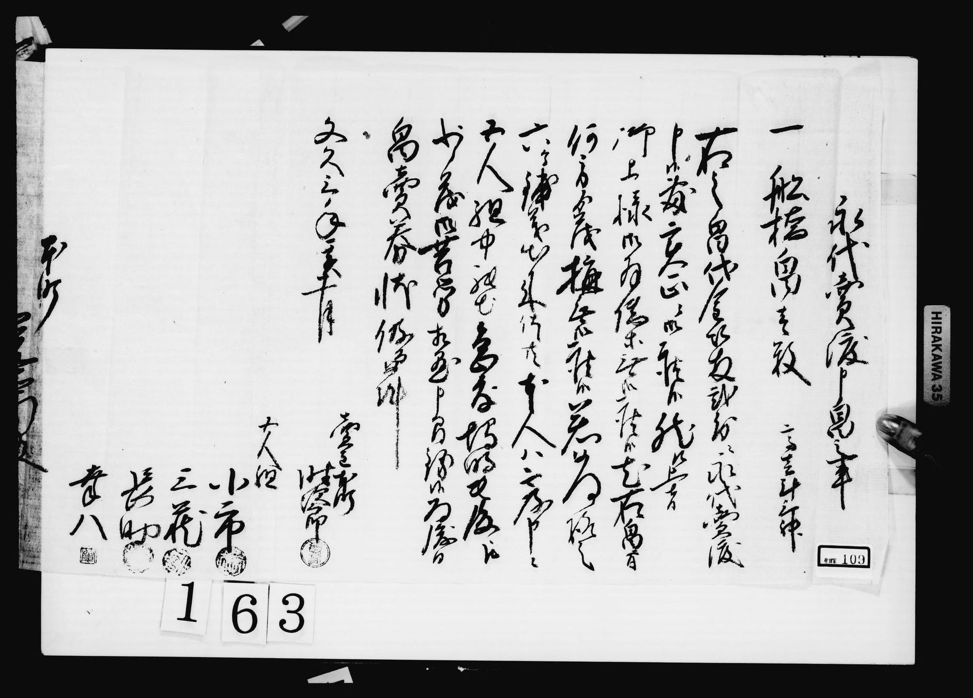 書状(肴不足に付料理送付願)