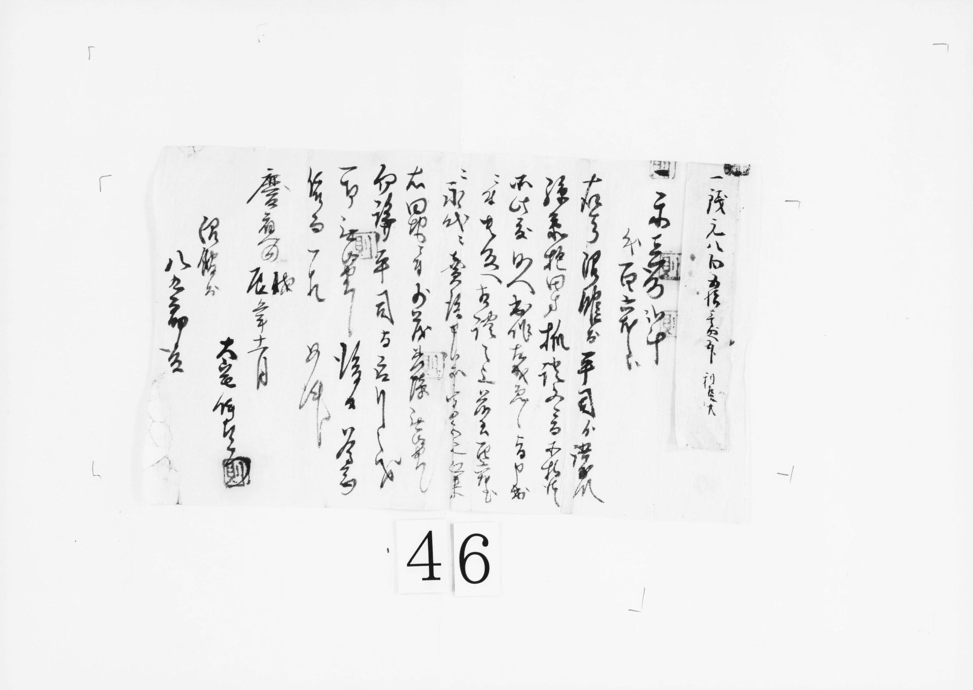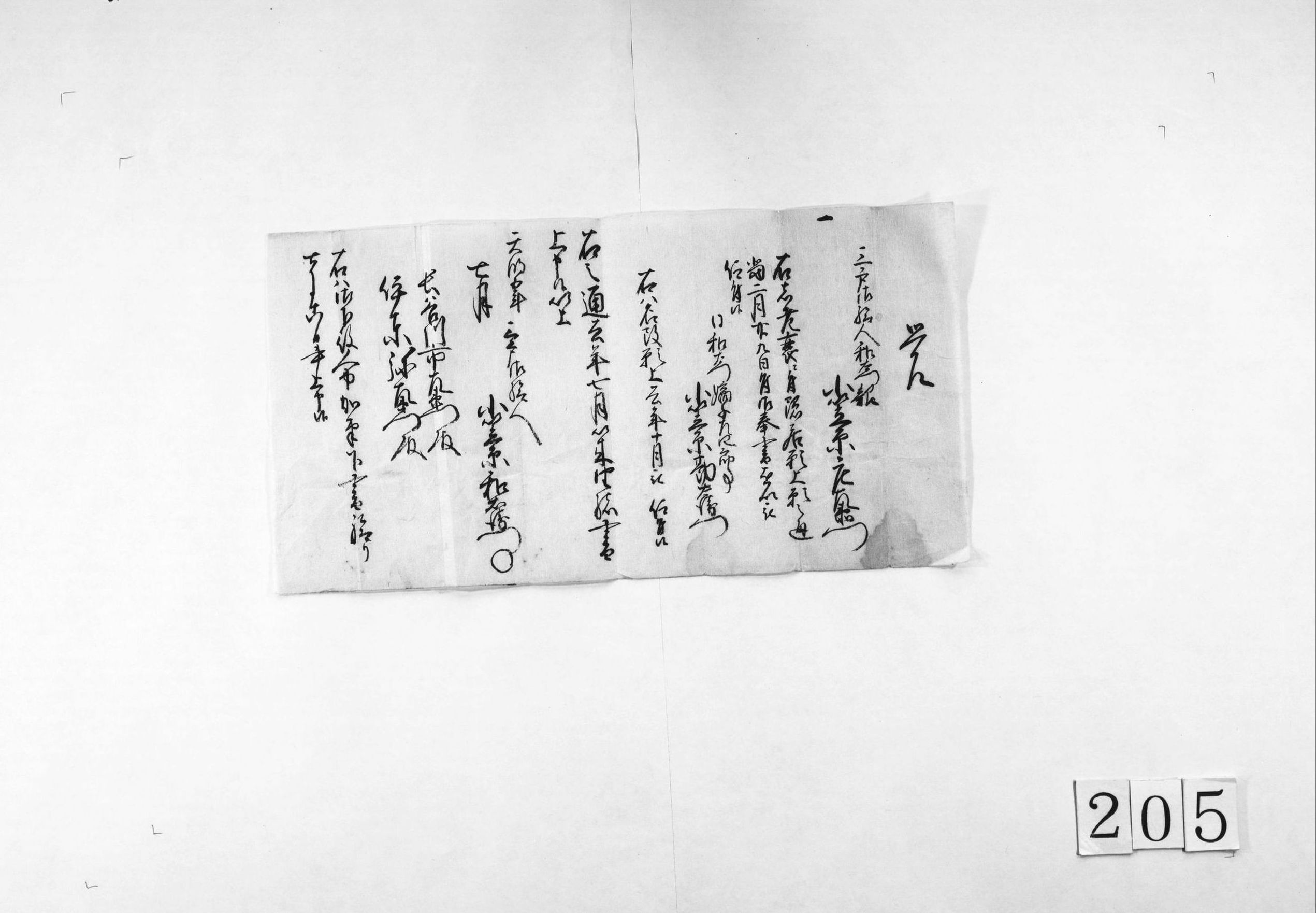 書状(別紙の通り連絡あり、方丈へよろしく)