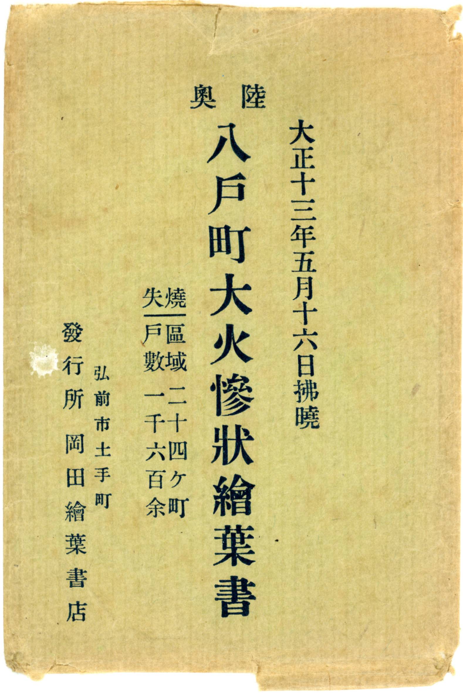 絵ハガキ(大正十三年五月十六日払暁 陸奥八戸町大火惨状絵葉書)