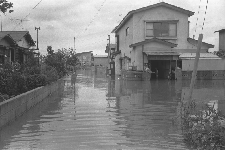一面水浸しになった西滝住宅街